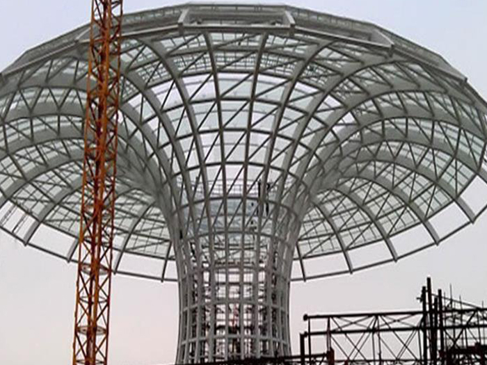 二、球形网架结构因其结构新颖,受力合理,自重轻、用钢量低等优点。如大型体育场馆球形新民螺栓球网架、公共场馆球形网架、电厂新民螺栓球网架、水泥工业球形网架、仓储物流球形网架、新民干煤棚工业球形网架、新民收费站新民加油站球形网架、展览中心、影剧院、商场、航站楼、候车厅、工厂新民车间、仓库、电视塔等球形螺栓球节点网架。国内球形网架结构主要分为:新民焊接球节点网架及螺栓球节点网架两种。螺栓球节点网架其构件工厂内加工量较大,现场安装便捷,适用于现场工期紧,新民施工条件、用电量受制约,网架形状复杂、新民杆件定位困难的异形结构。螺栓球节点球形网架系统基本由新民杆件、螺栓球、支撑支座等组成。按照节点形式可分为交叉新民桁架体系、四角锥体系、三角锥体系等。支撑方式多为固定支座支撑。对于大面积、大跨度及有特殊受力或伸缩要求的网架结构可采用橡胶支座、滑移支座、球铰支座等支撑形式,以满足结构自身的受力稳定、均衡,便于内力释放等设计要求。